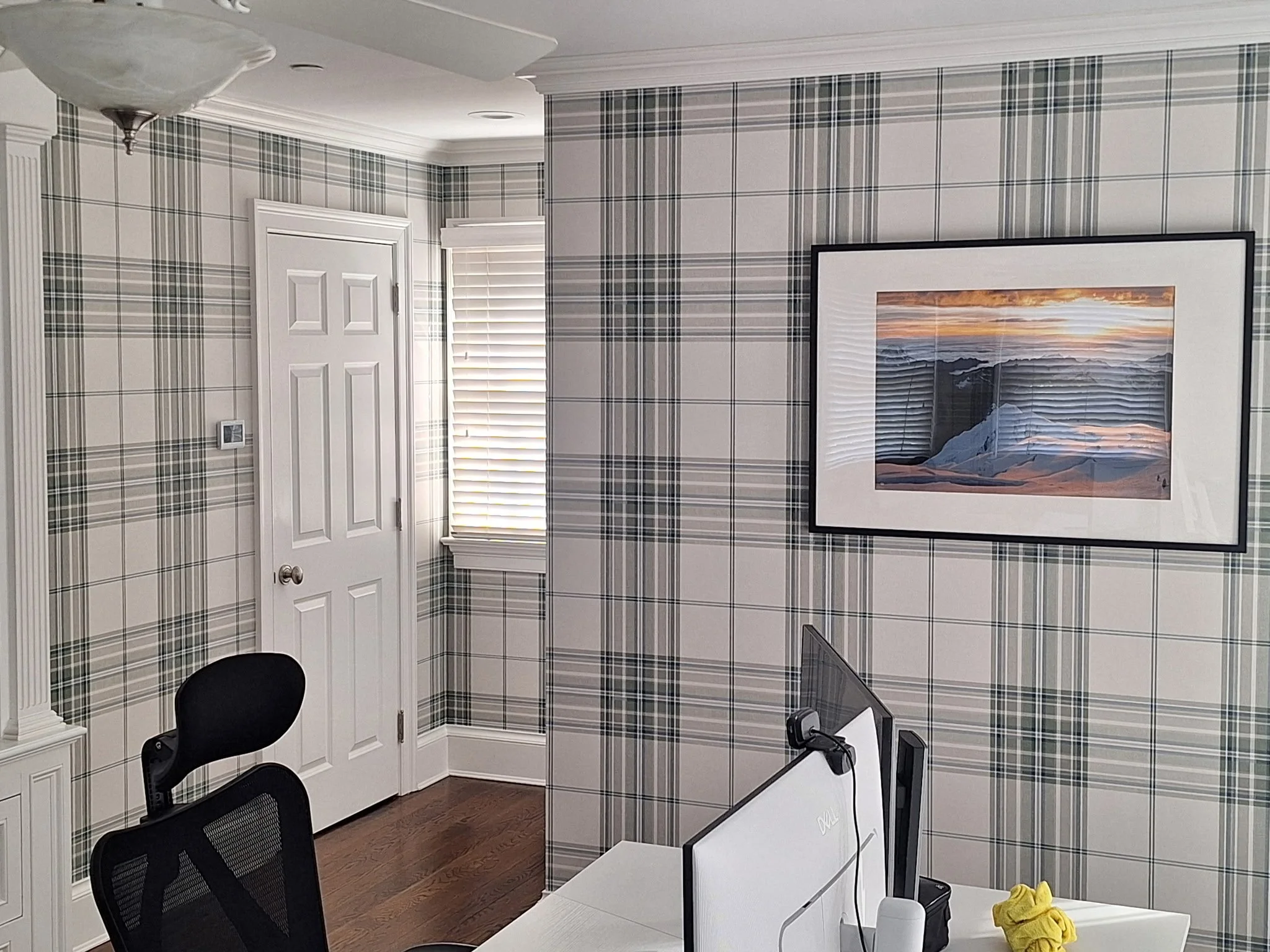 Plaids and checks work beautifully as accents — a tailored Roman shade in a small-scale tartan, a pair of armchairs upholstered in a subtle check, or even a crisp wool throw draped over the foot of the bed. For those feeling adventurous, wallpapering a study or mudroom in a woven-inspired grid brings instant warmth and character.